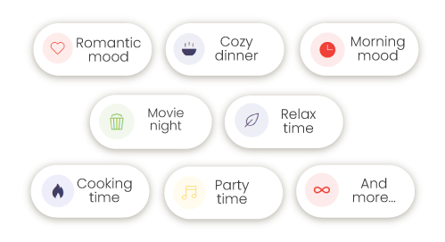 Quickly change the individual device settings or select one of the predefined scenes to create perfect atmosphere for the memorable holiday!
