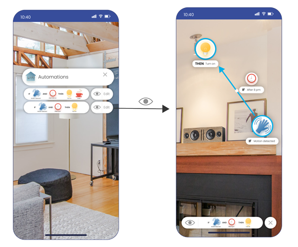 The smart home automation overview tab is changed to a separate more visible button and a blue outline signifiers are added to the linked smart appliance icons for users to find the connected devices faster.