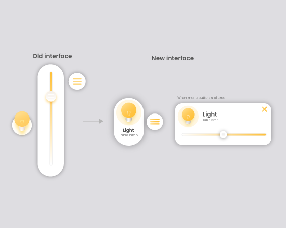 To reduce clutter on the screen, the interface would expand only when it is centered. Nevertheless, participants often would move the mobile phone when trying to reach the slider, thus loosing the IoT communicators view on the camera and making the interface of that device dissapear. To improve that, the controls of the appliances will be put on the separate pop up which can be accessed when pressing the menu button.