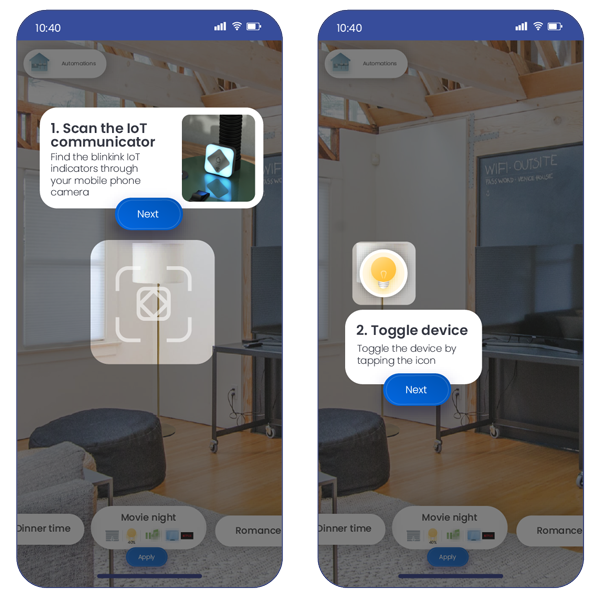 In this section, I briefly summarize the concept evaluation. More detailed information can be found in the report. A user study is conducted to evaluate the design concept and the usability of the prototype. The study consists of five parts - learning about participants’ Airbnb experience, evaluation of interactions usability and experience, UI control usability, and ease to use, IoT communicators’ light pattern recognition and business validation. During the study, to learn about the usability of the “Smart ARbnb” system, the participants were asked to perform a list of tasks, and their actions were observed. Furthermore, to understand if the user experienced the interface as simple to use and useful, the modified “Perceived usefulness and ease to use” [2] questionnaire was given to fill in. Next step, the evaluation of the light patterns' perceived meanings is done based on the Y.Chuang study process [3]. Finally, the desirability of the concept in the Airbnb context is understood from interviews with the participants.
