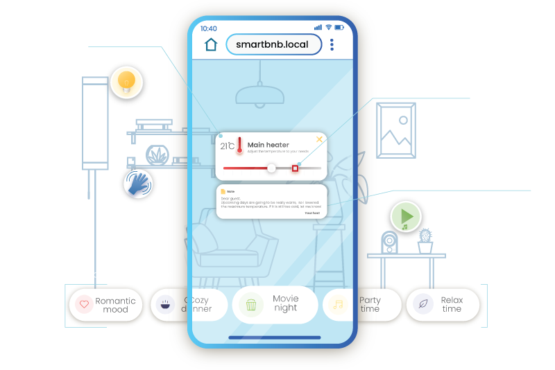The interface can be accessed only in your home WiFi network and after physically detecting IoT indicator. So no checked out guests can interfere with next guests!